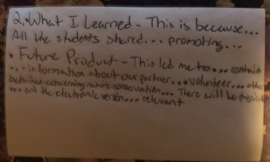 For my first artifact, it is a paragraph from my 5th reflection. This is where I talk about how the meetings with our partner, HeartLands Conservancy, went.