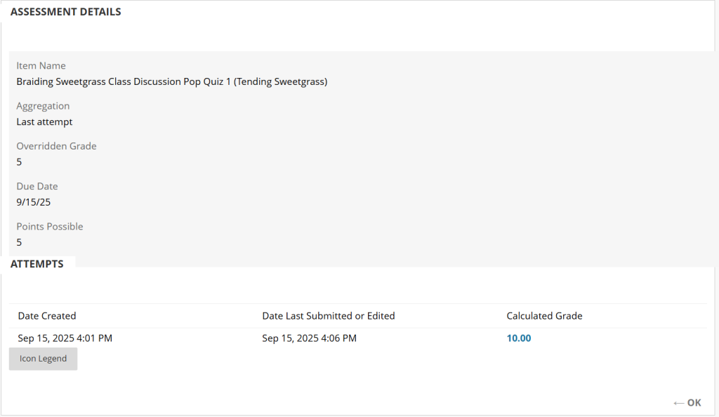 | (25%) Based on (6A) Intercultural Knowledge and Competence: Articulates own cultural rules and biases and recognizes and responds to biases | Read braiding sweetgrass and think about the differences between my culture and indigenous knowledges | * Select two reflections over braiding sweetgrass to display my goal * Exam questions over braiding sweetgrass * Show braiding sweetgrass pop quiz | *Score at least 80% on braiding sweetgrass reflections * Answer 70% of braiding sweetgrass questions correctly on exams * Score at least 80% on sweetgrass pop quiz |