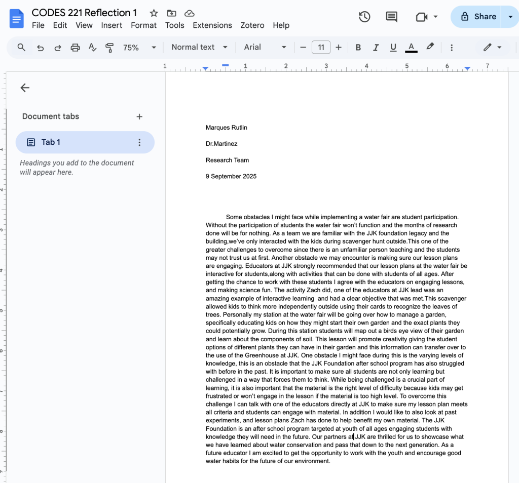 This artifact is reflection one, I explain obstacle I’ve face during my reaserach process and success I’ve had. In addition I also explain steps I’m taking to become a better team member and leader in my research team
