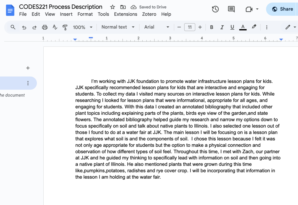 This artifact shows the annotated bibliography I made while analyzing different lesosn plans. This required to me to look at many different sources and find sources that I could implement at JJK