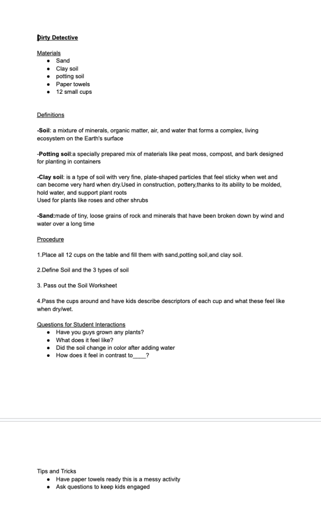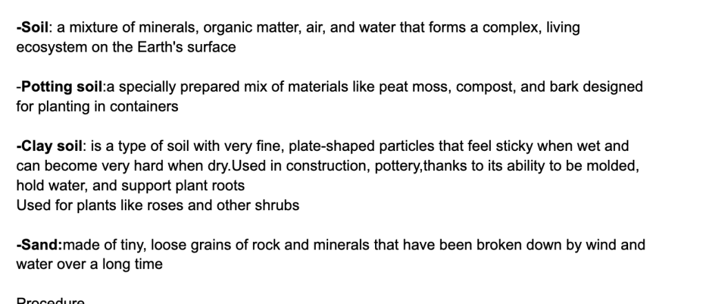 This artifact is the notes I took after researching different types of soils to use in my lesson plan.