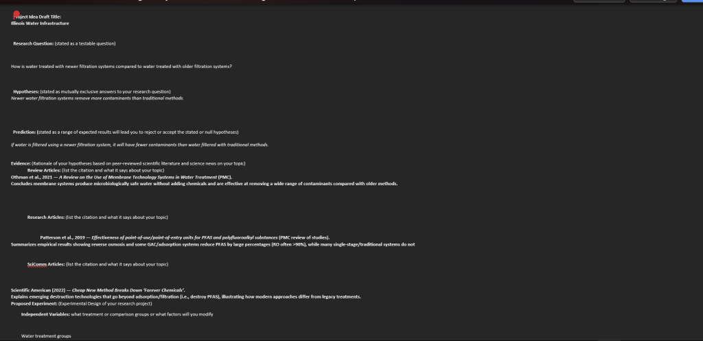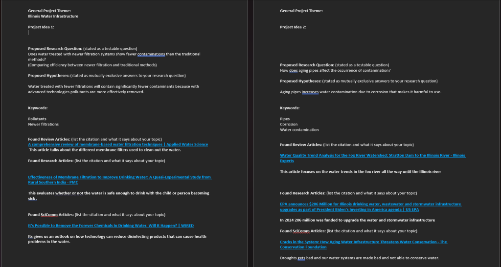 | Collaborate with research group to develop a research question/ hypothesis Analyze various sources of evidence for the research report | -Research question -Draft outline(project ideas) -Annotated Bibliography -Project drafts -Project Idea’s Worksheet | I will be more confident in my work since I’ll know exactly what I’m talking about. |