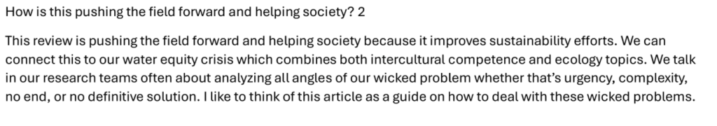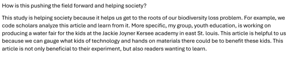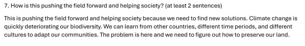 Below are snapshots of the final questions on Jigsaw Prep assignments. This question asks how this is pushing society forward. This very clearly draws a connection between in class learning and real world problems. Full points were rewarded.