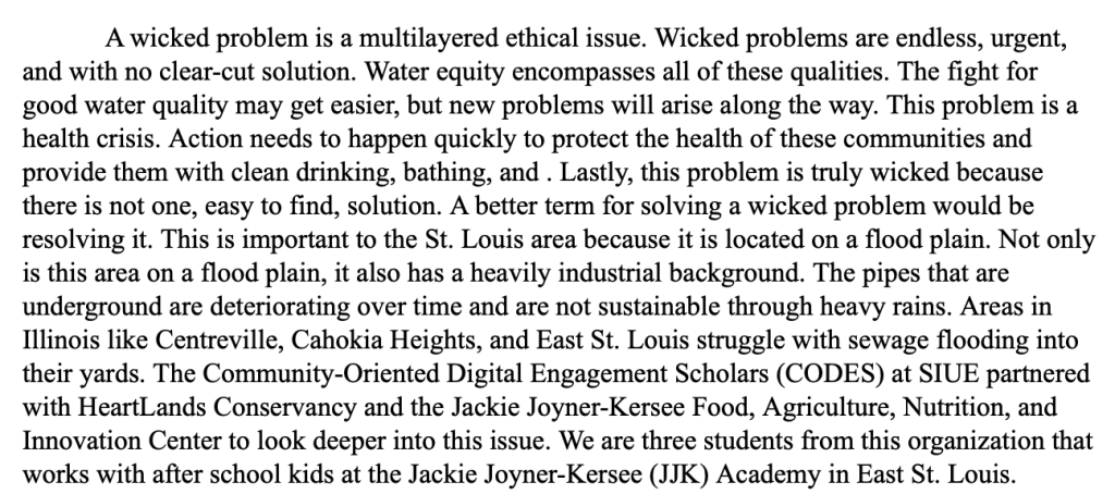 In the introduction to our final research paper, we address the water equity crisis along the Southern American Bottom. Here is a piece I wrote in this, reflecting on ethical issues in this community.