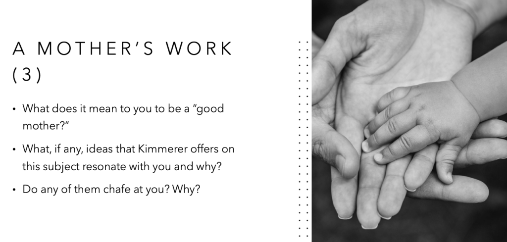 A Mother’s Work sparked a conversation about reciprocity and the role Mother’s have in society.