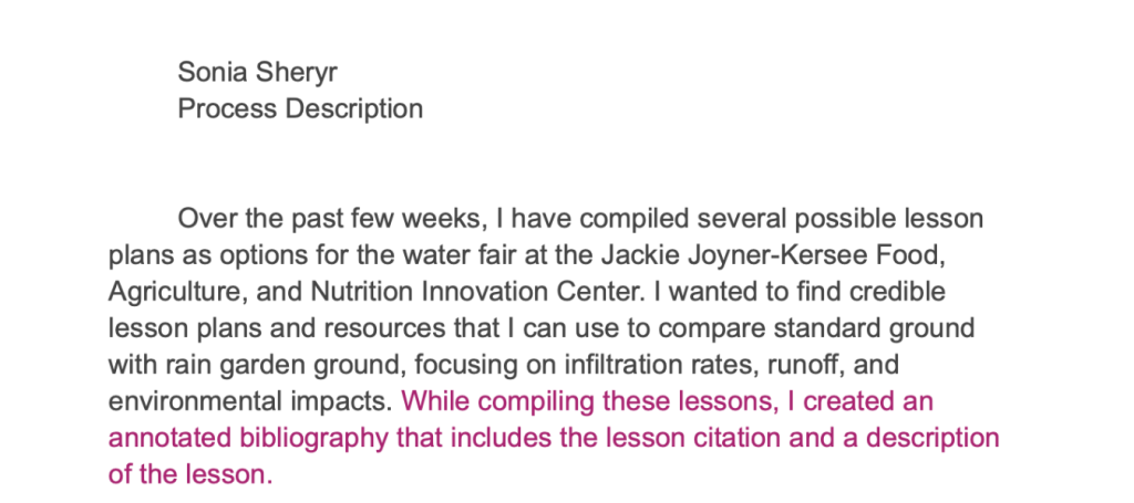 Dr. Martinez provided me with feedback for my process description, which aided in creating more depth into my writing.