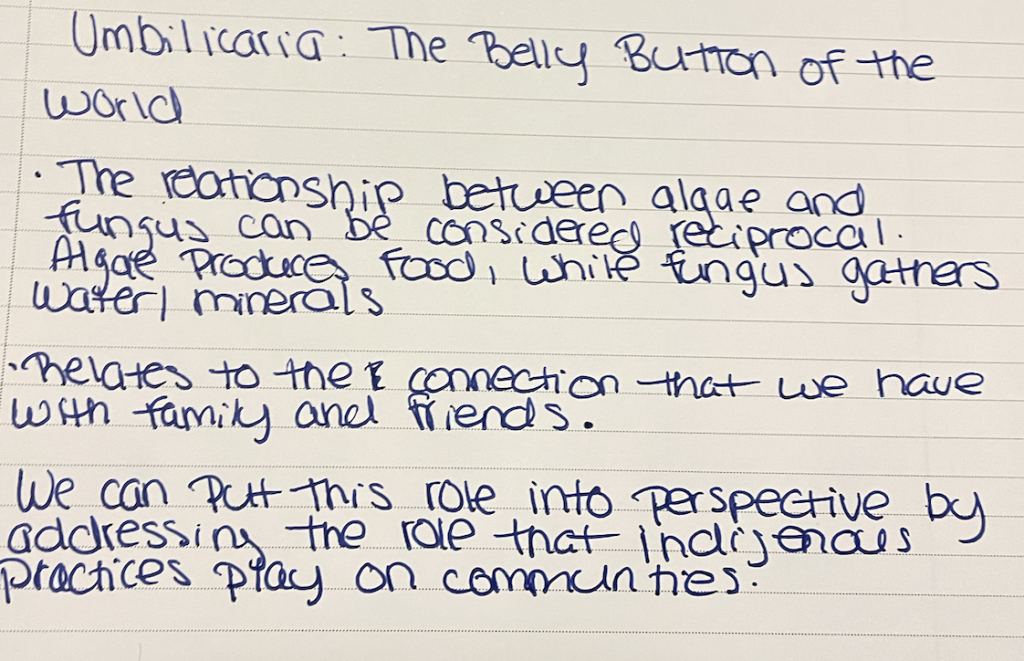 This set of notes illustrates my ability and dedication to understanding material. Here I was able to describe the realtionship of algar and fungus as explained the chapter slidshow. Moreover, I was able appy my own ethical values and opinions to the questions.